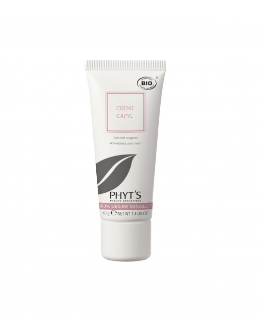 La Crème anti-rougeurs bio, Phyt's Capyl est un soin qui va harmoniser le teint et redonner confort ainsi que uniformiter aux épidermes sujets aux rougeurs diffuses (joue, ailes du nez)
